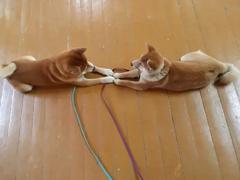 Typically the black shading of a sable sesame appears on an originally red-looking puppy only after the first puppy coat has been shed. In gene test, the sable sesames seem to have the genotype E/E Ay/at or E/E/ Ay/aw, which means that they don’t usually carry cream. It is supposed that the sable sesame phenotype is inherited with the Ays gene form, which is recessive to red (Ay) but dominant to aw-sesame (aw) and black-and-tan (at). It follows that a breeding of Ays sesame and a black-and-tan should result in puppies, which are either Ays sesame or black-and-tan. It is not yet fully clear how cream carriers or "double-Ays" Shibas look like. Breeders of Ays sesame Shibas have reported that the hypothetical Ays gene form is actually inherited in a predictable fashion.